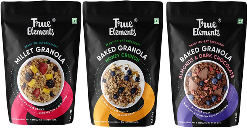True Elements Millet, Baked Granola - Honey Crunch, Almonds And Dark Chocolate(420 G, Pouch, Pack Of 3) is available on Flipkart.