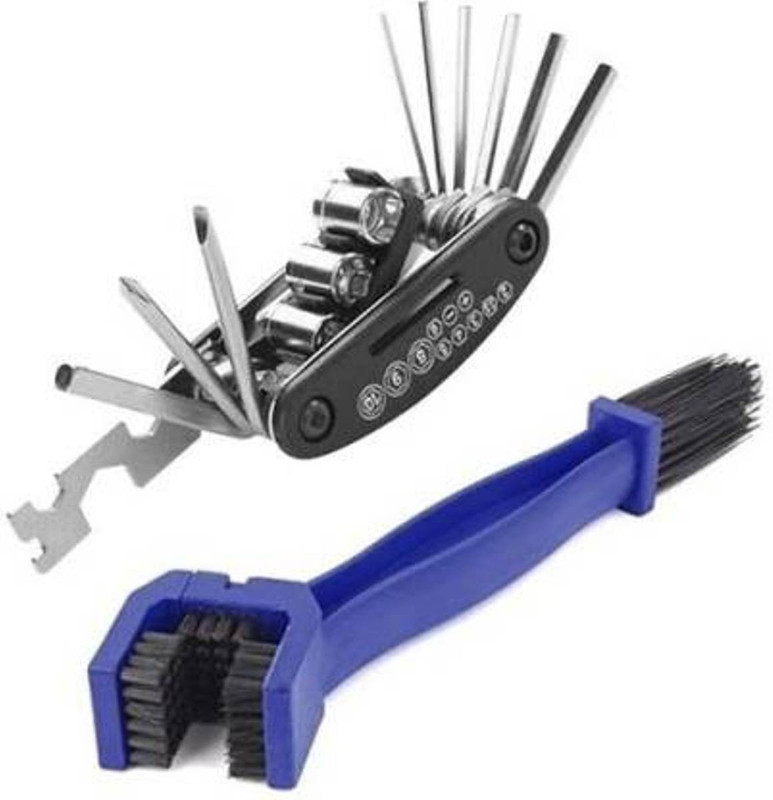 Afpin Combo Of Chain Cleaner Brush And 15 In 1 Multi-Function Tools Kit Spoke Wrench Cycling Bicycle Chain Cleaner Brush & Tool Kit is available on Flipkart.