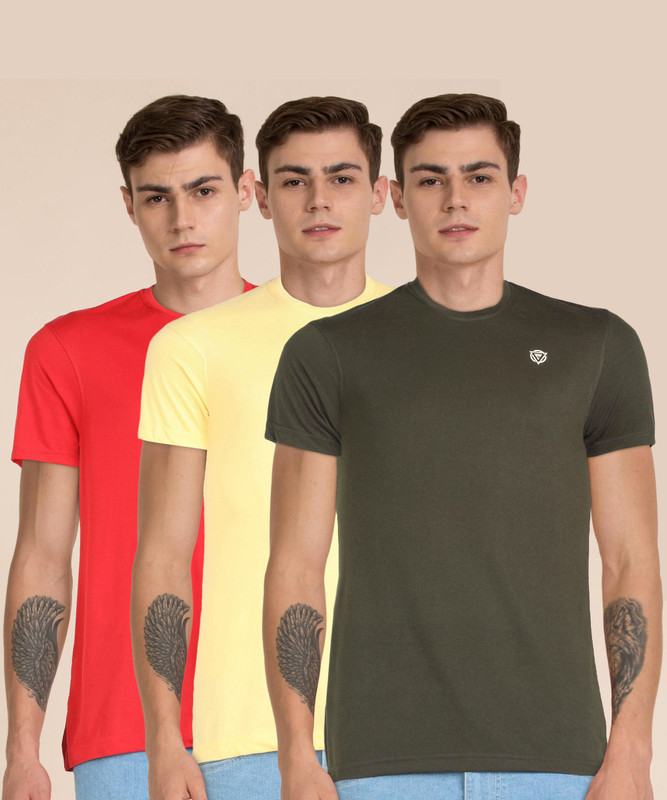 Fort Collins Solid Men Round Neck Multicolor T-Shirt(Pack Of 3) is available on Flipkart.