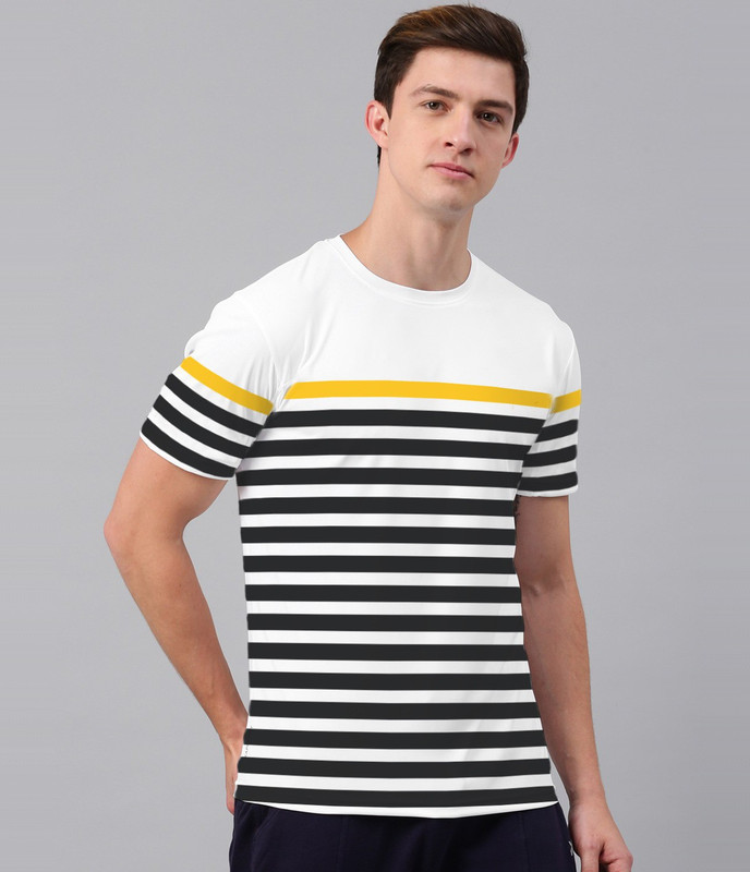 Jump Cuts Striped Men Round Neck Reversible White, Black, Yellow T-Shirt is available on Flipkart.