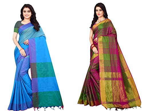 Dhruvi Trendz Soft Cotton & Silk Saree For Women Banarasi Saree Under 399 2021 Beautiful For Women Saree Combo Pack Of 2(Multi &Sky Blue_Free Size) is available on Amazon.