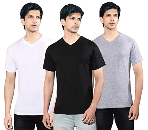 Yazhi Men'S Regular Fit V Neck Plain Combo Cotton T Shirts-Pack-3-Black White Grey-Large is available on Amazon.