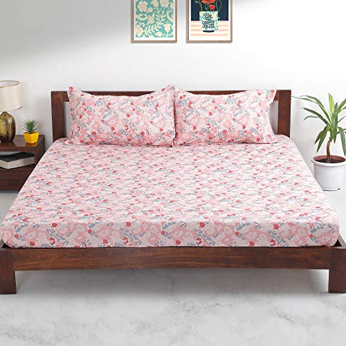 Chumbak Bahamas Beach Floral Double Bedsheet - Queen Size With 2 Pillow Covers, 144Tc, 100% Cotton, Pink is available on Amazon.