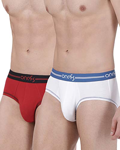 One8 By Virat Kohli Men'S Solid Brief (Pack Of 2) (203A_White/Brick Red_Large) is available on Amazon.