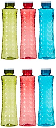 Amazon Brand - Solimo Plastic Water Bottle Set Of 6, Multicolour, 1L Each (Prism Pattern) is available on Amazon.