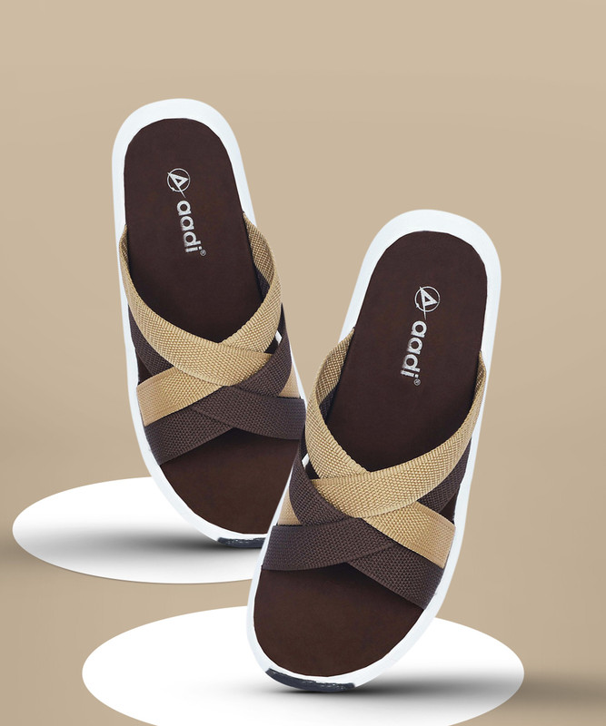 Aadi Slides(Brown, Beige 2) is available on Flipkart.